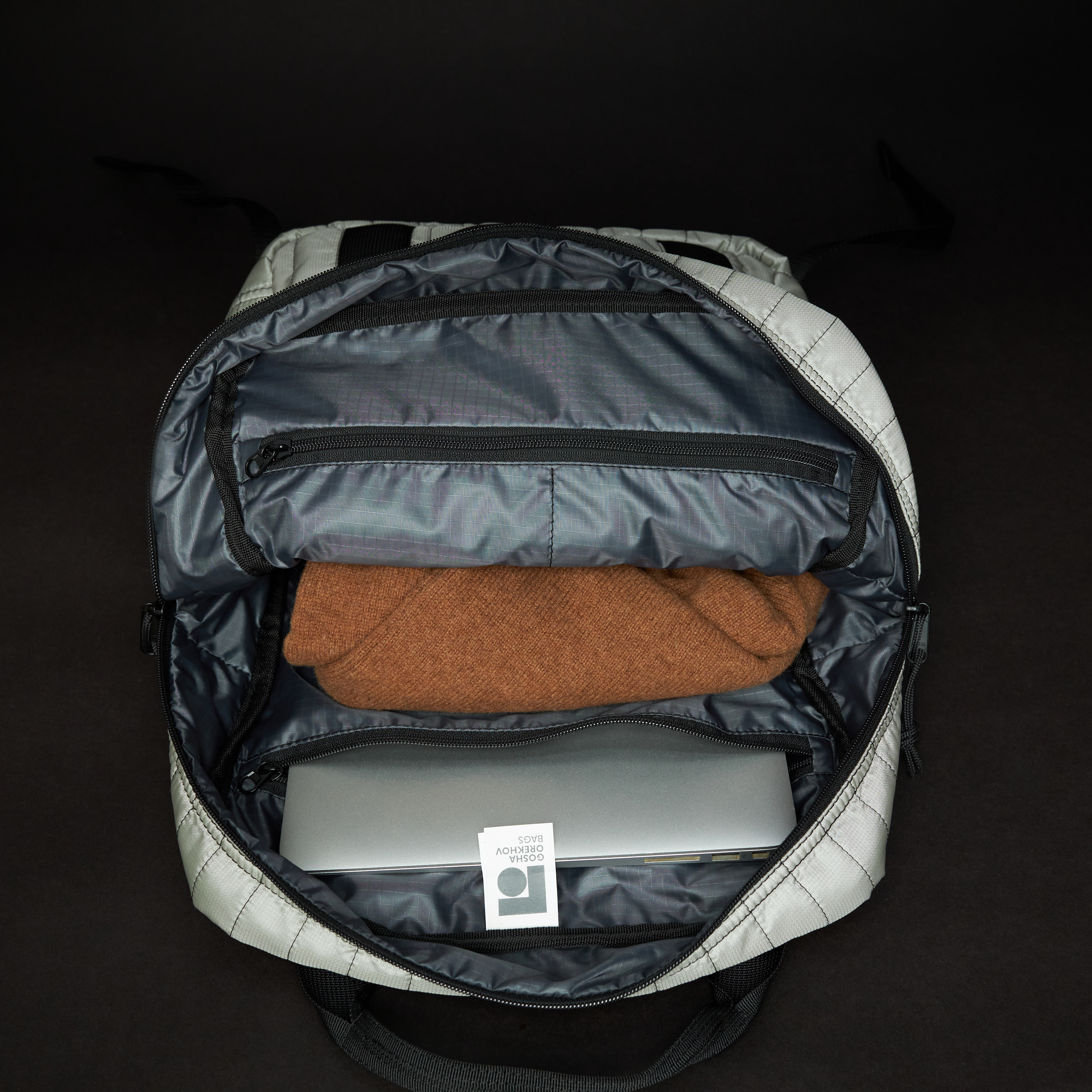 - Внутри карман для документов/ ноутбука 13", два кармана для мелочи и один снаружи, все на молнии