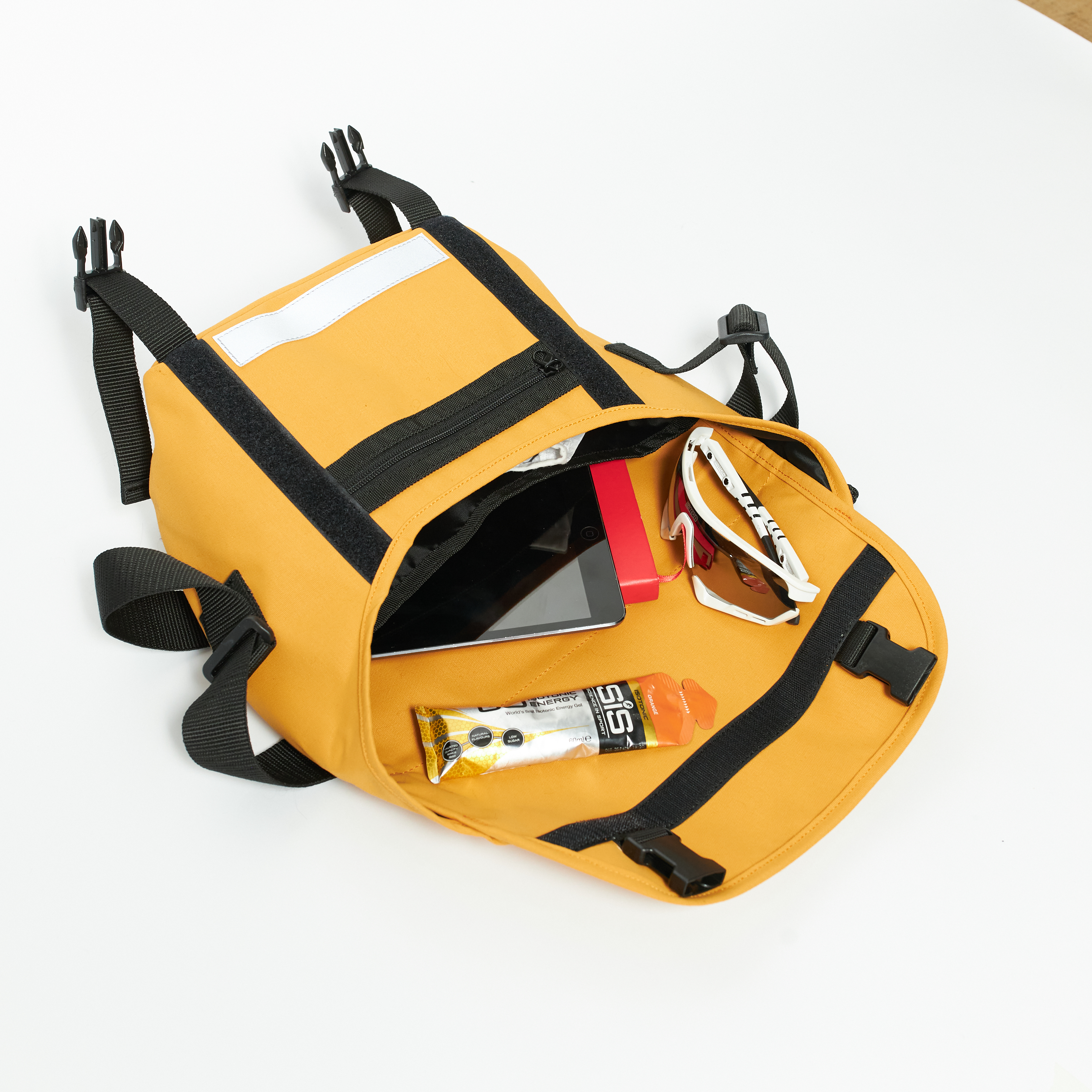 - Размеры: высота сумки 23 см, с открытым клапаном - 43 см, дно 22 х 11 см. Объем 5 л.