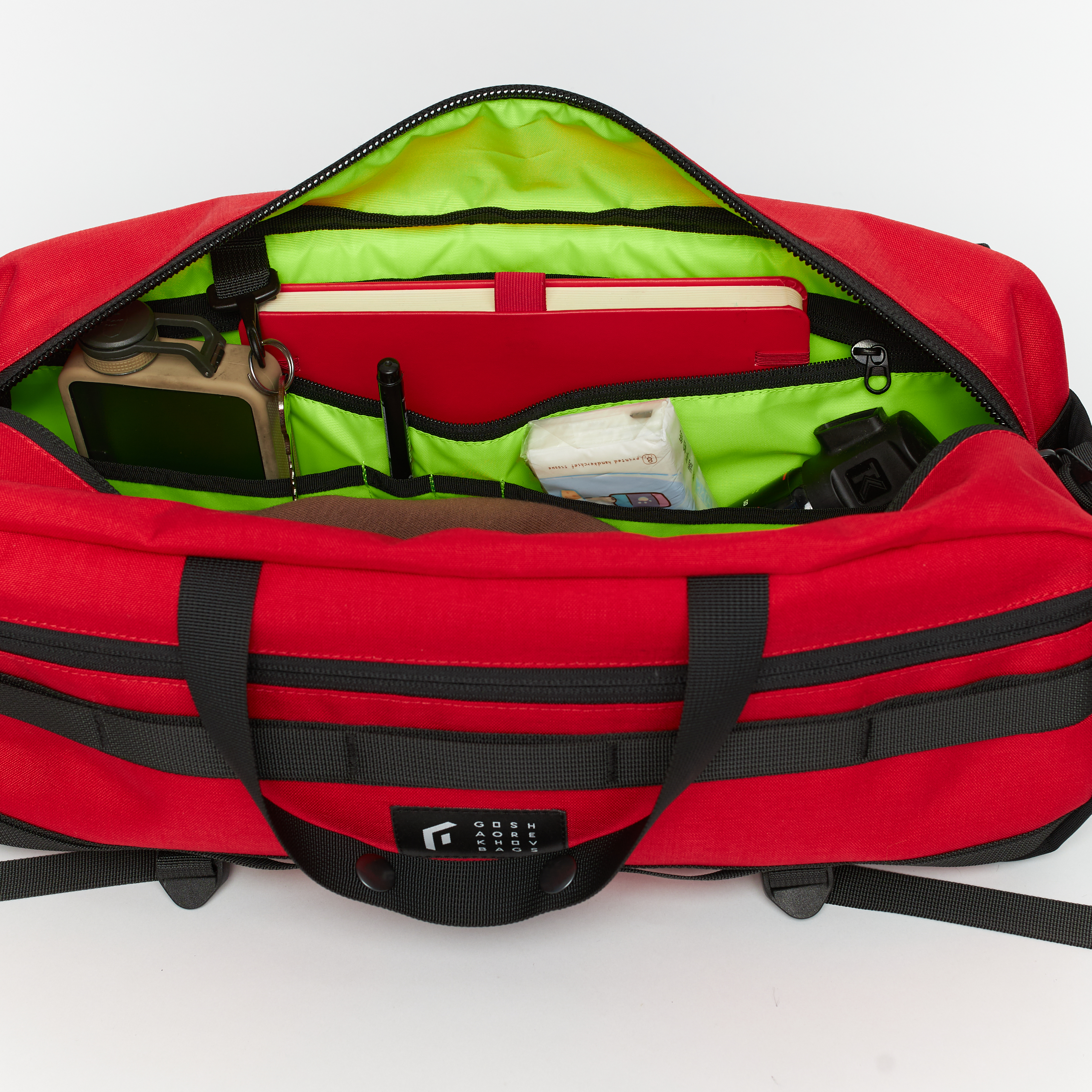 - Система молле из строп на передней части сумки