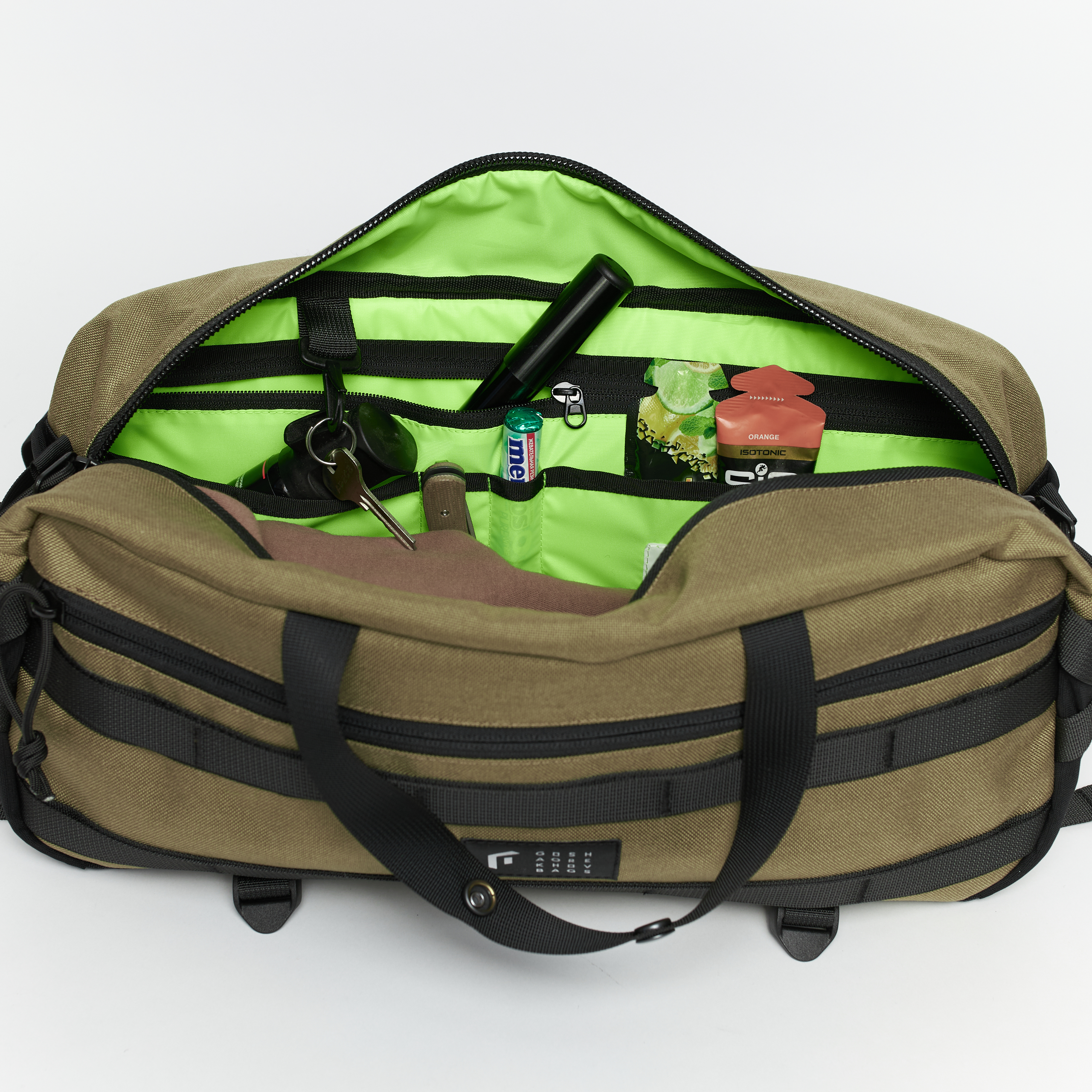 - Система молле из строп на передней части сумки