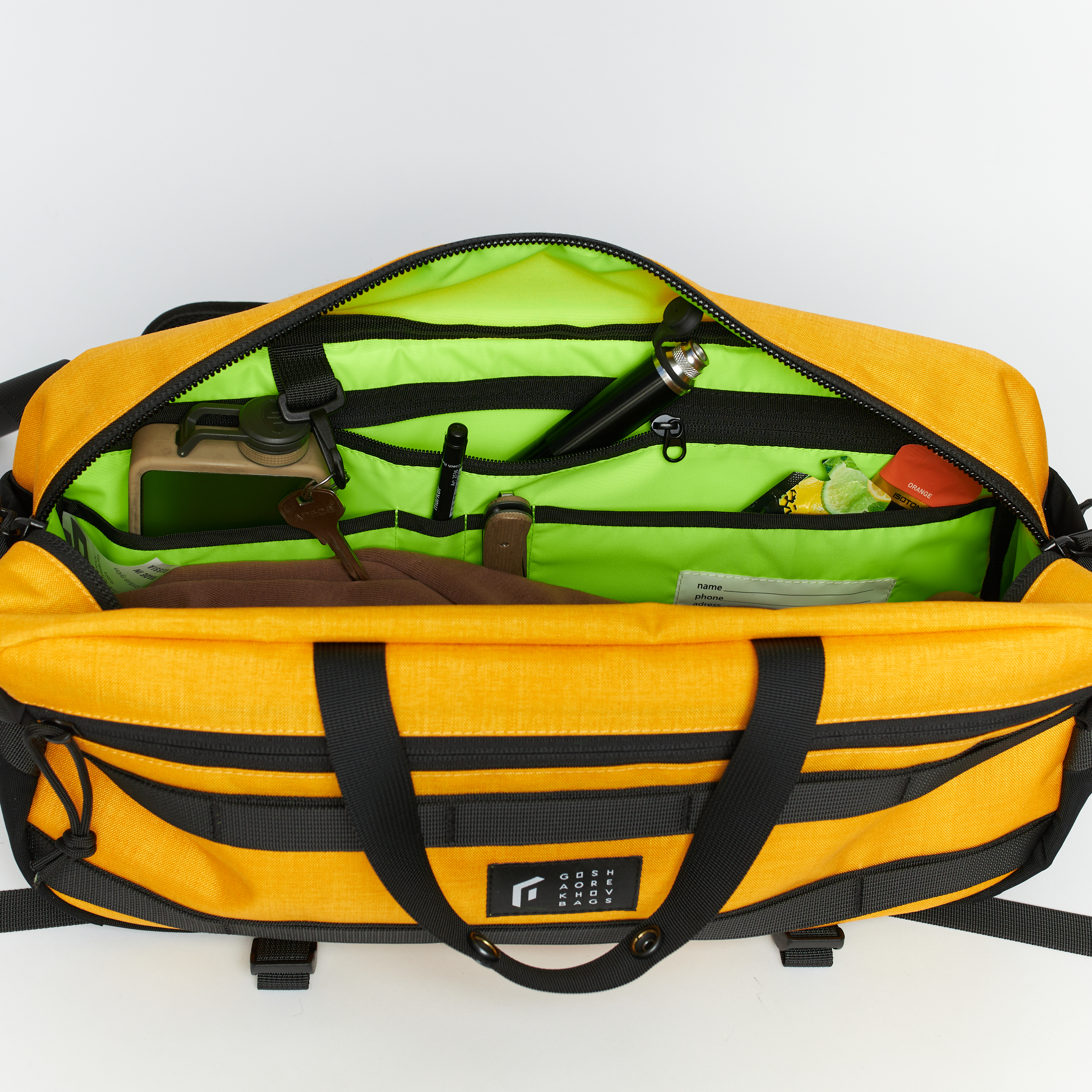 - Система молле из строп на передней части сумки